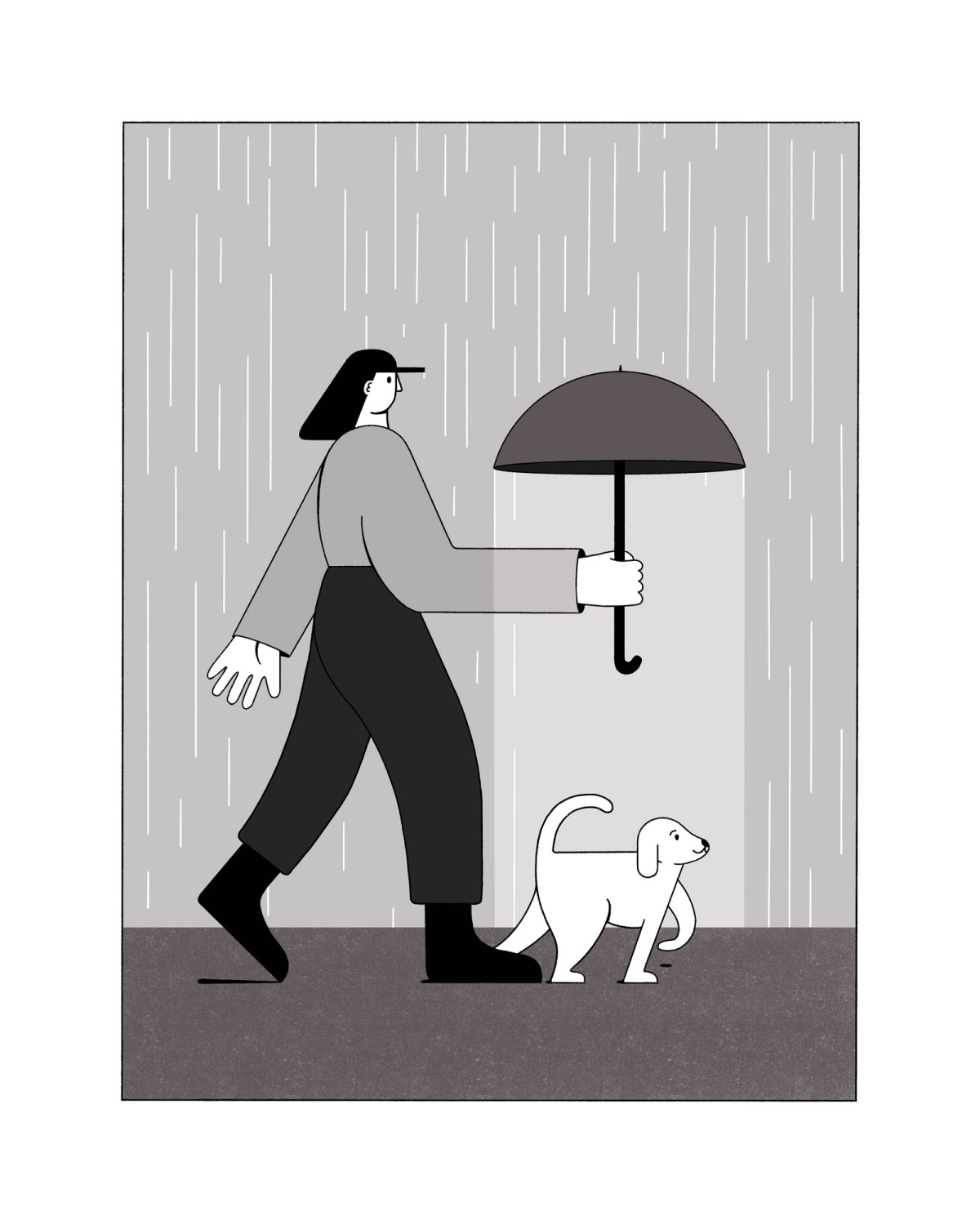 I always start my sketches with lines, but when I work on my illustrations, I tend to use filled-in shapes and add lines later for the details.