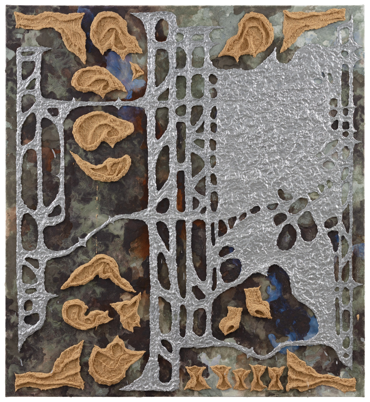 You work with a wide range of materials, from pearlescent pigments to marble powder and recycled plastics. How do you choose which materials to combine in a single piece, and what do they allow you to express that traditional media cannot?