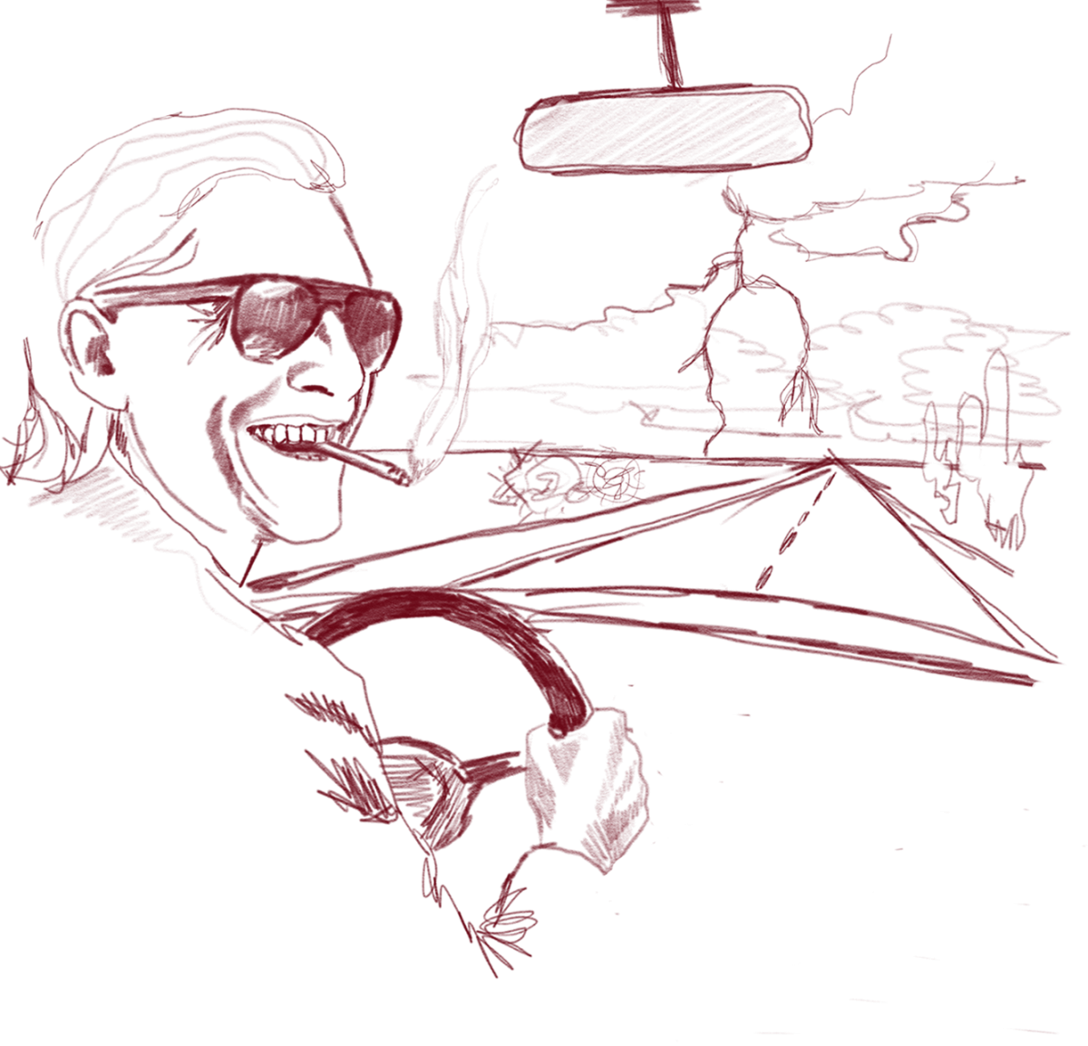 Lauri: Oh yes, I think I got this one? It’s a human. Eyes hid behind some silver-lensed cool shades speeding up a lonesome highway that’s straight as an arrow, smooth as a dolphin and dark as all hells combined with a smile while ripping on a pack of smokes with such devotion that one after the other they all leave behind a trace of perpetually flickering amber for no one, for there is no one any more on either direction of this course. The past has already receded. The future too imminent. And the radio so loud. What comes will flash before their eyes that are shining impatiently ahead through a big red crosshair painted on the car’s windshield as the purple sky in the mirror brews electric with a perfect storm of both divine beauty and natural destruction.