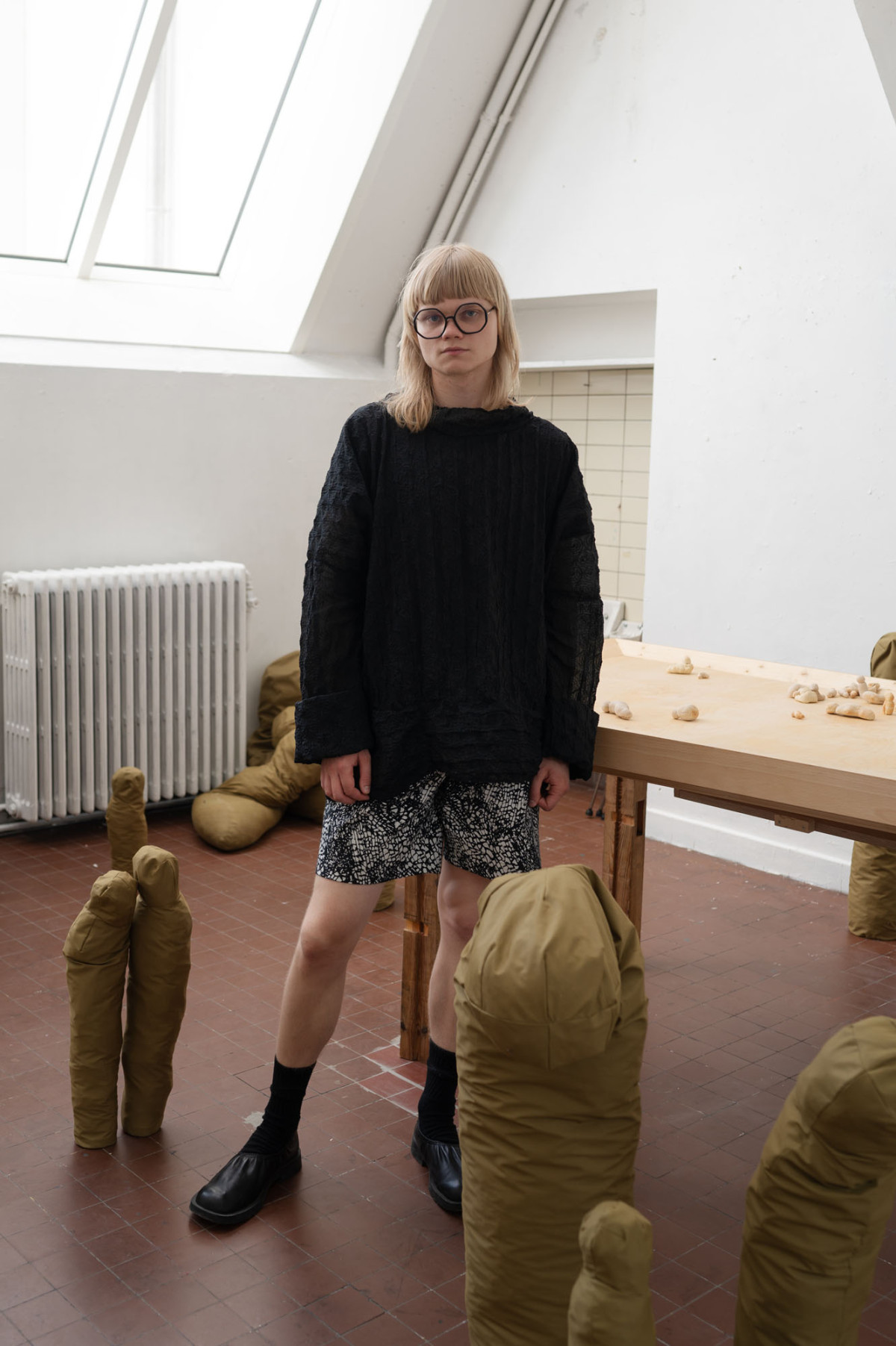 I am currently 24 years old. I chose to study tailoring instead of attending a traditional high school. Later, I pursued fashion at the Estonian Academy of Fine Arts, followed by a master’s degree in costume design at the Royal Academy of Fine Arts in Antwerp. However, the program was not strictly focused on costume in the conventional sense. Rather, it explored costume as a medium within the free/autonomous arts, emphasising the ways in which creation can be activated through certain performative perspectives—without necessarily positioning myself as an artist in the position of a performer. The (physical) interaction between subject and object was central to my approach, if to define it in some way.