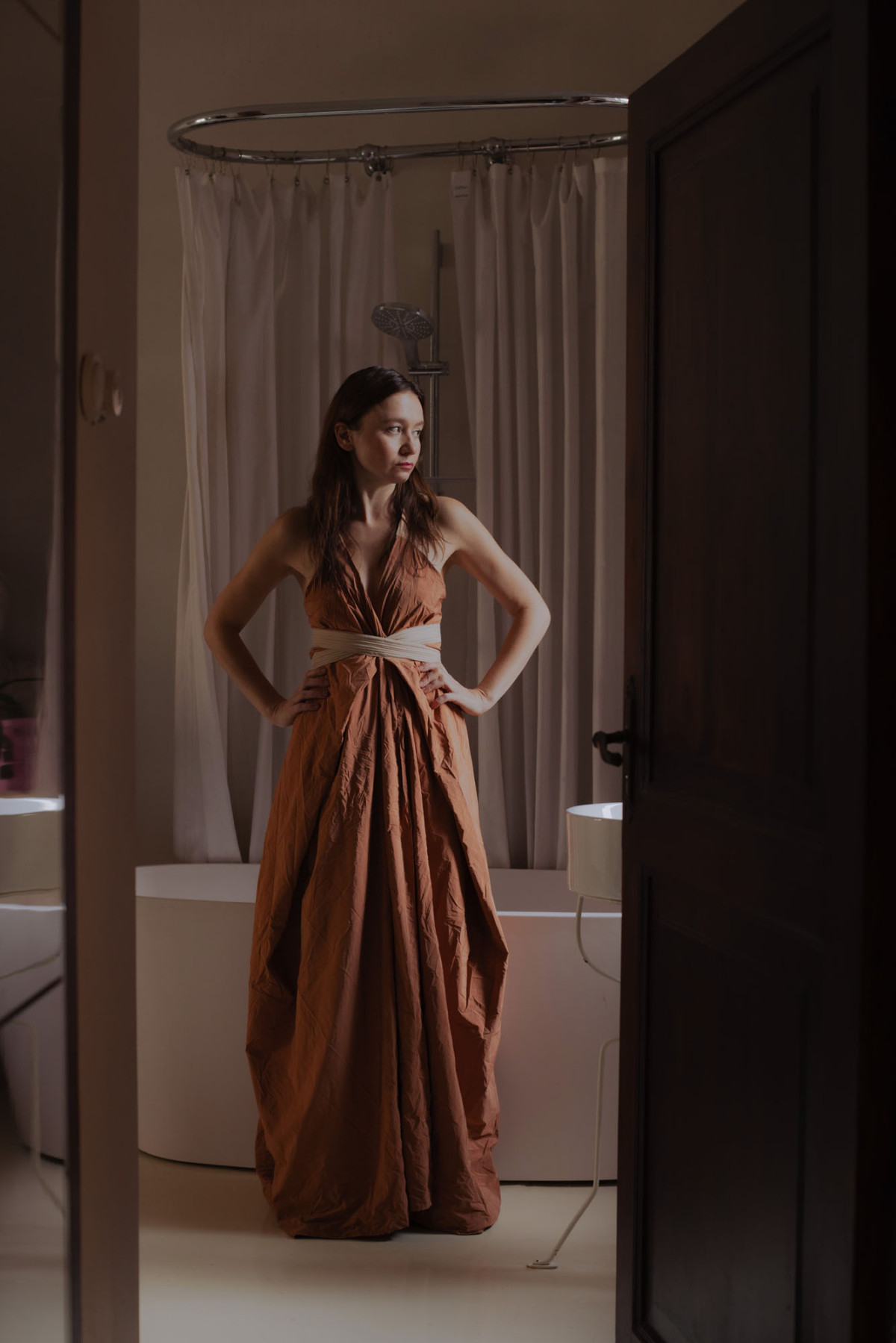 This is also from Frustra performance and made by Kadi. Love it, as you can combine and wrap it around you in so many different ways. It's my main gear to attend a wedding, so it gets out of the closet maybe once a year. When you unroll it, it’s just a rectangular piece of silk with two stripes of rope attached to it and some sewing. It’s super simple but allows a very creative approach to wearing it. The last time I wore it was at a wedding on a Greek island, where the wind truly made it “alive,” flapping around me.
