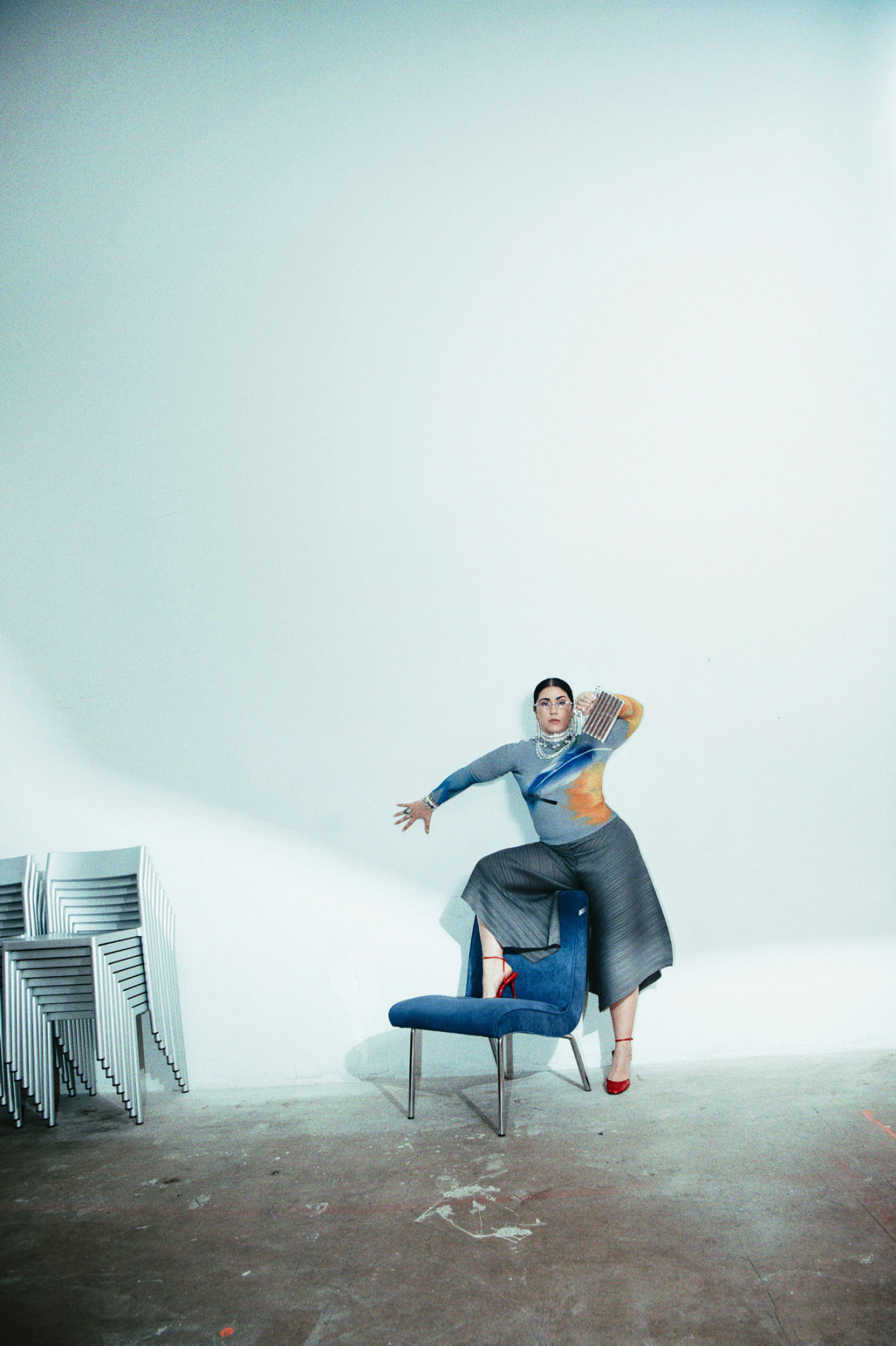 Then, me outside of Ballroom is giving relaxed, baggy, and masculine. I feel like there’s a beautiful balance between these two worlds, and I feel comfortable portraying these different energies. At the moment, I’m very into Japanese high-fashion brands. I love vintage and secondhand high-fashion accessories and have been collecting vintage sunglasses since I was a teenager. I have a huge obsession with jackets and shoes – but recently I’ve had to calm down a bit, since I don’t have space anymore, and I’ve been trying to give things away or sell them.