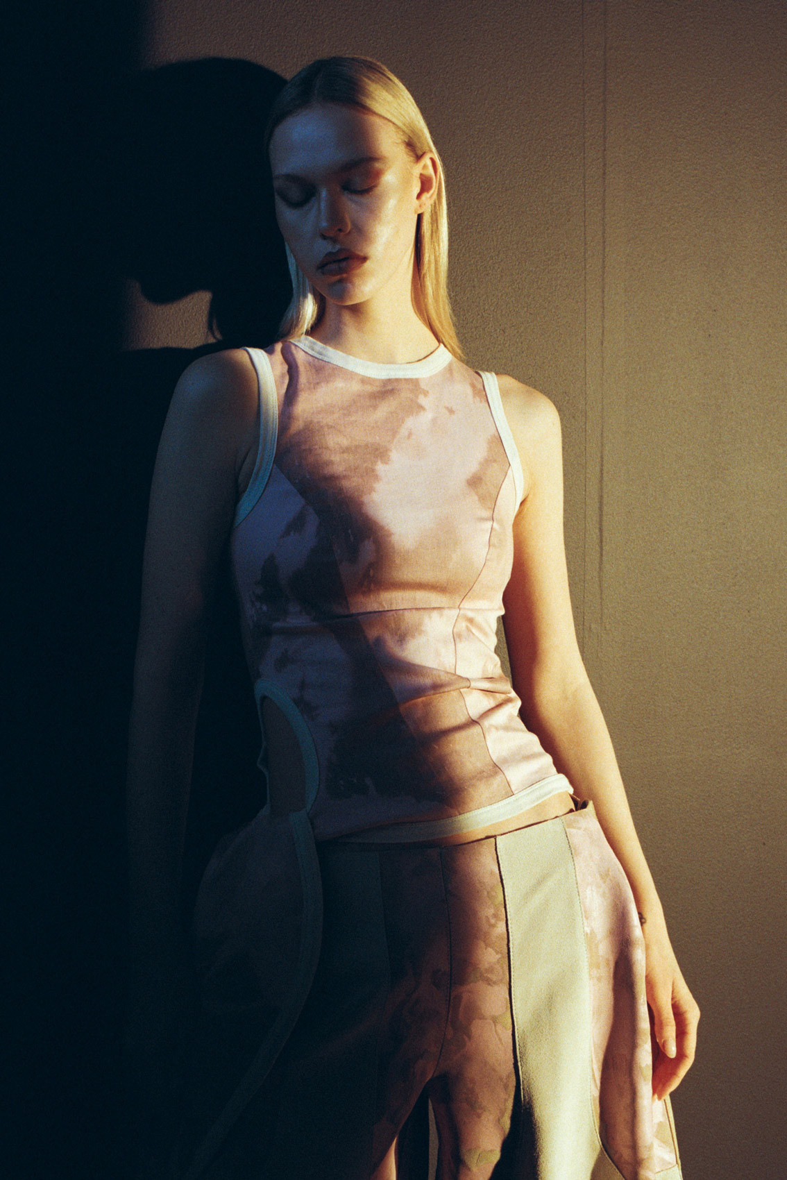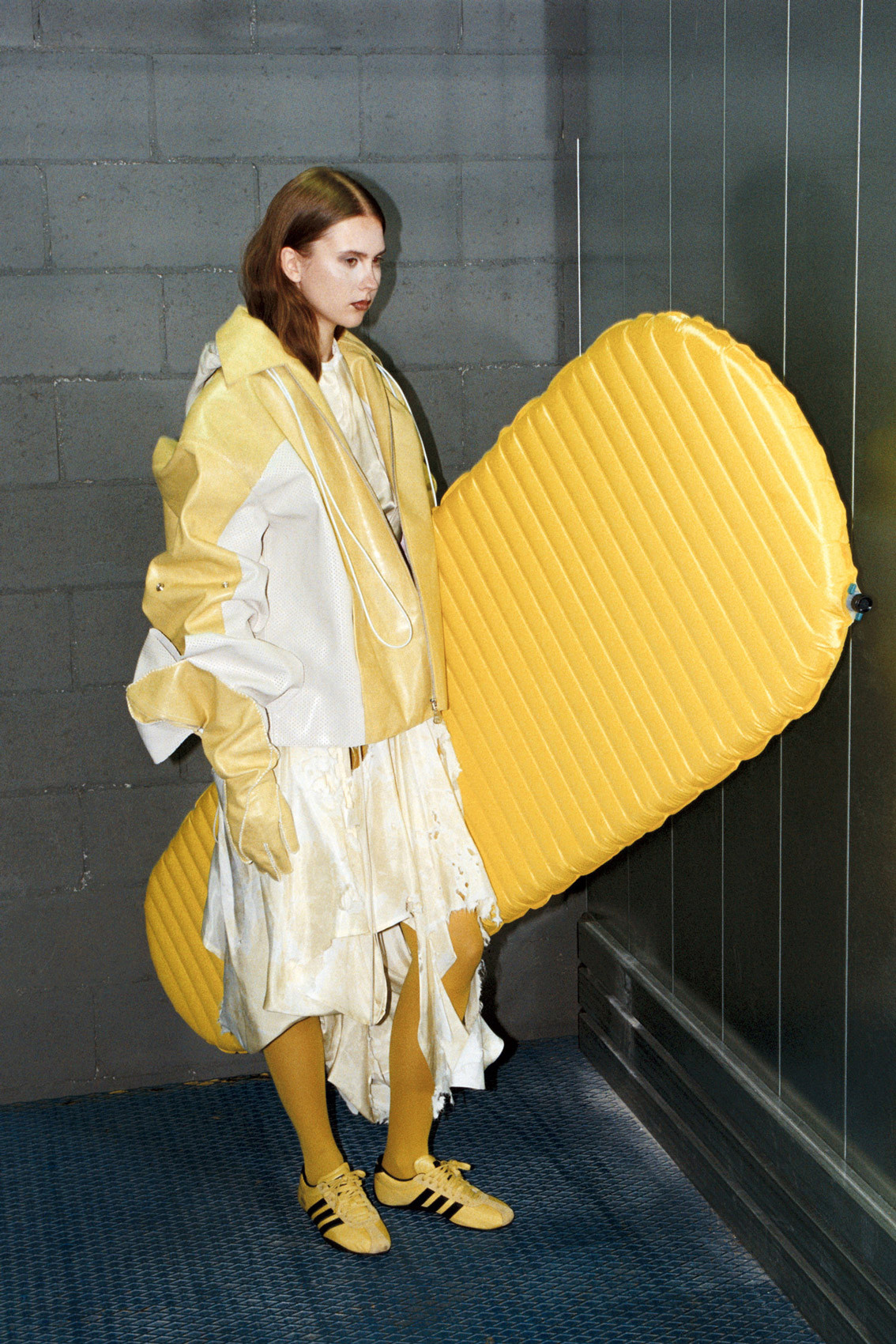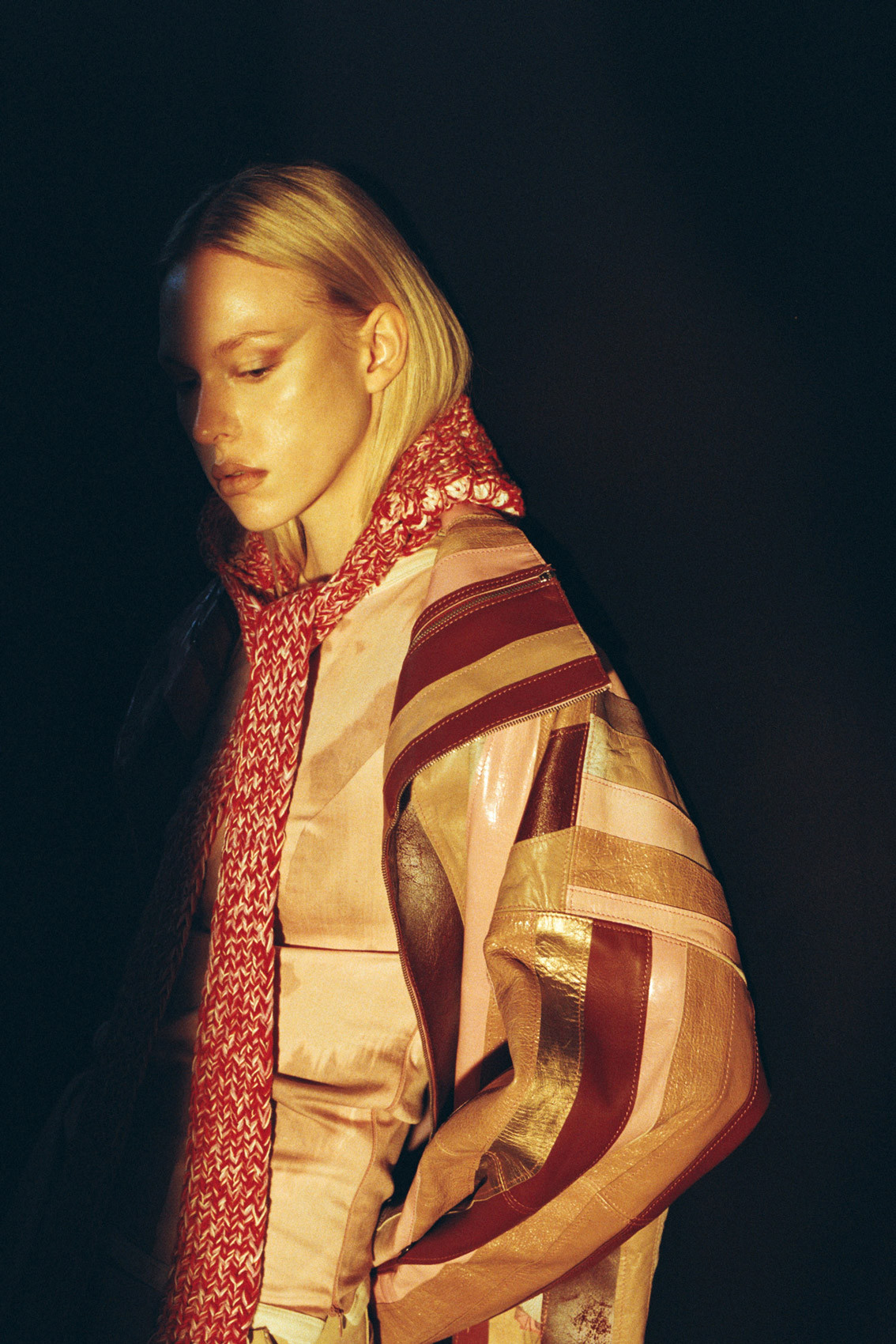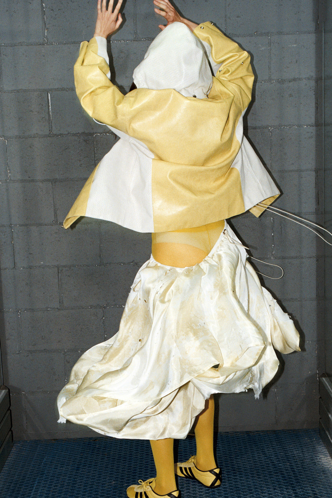Fabrics show up already tired.Bleached. Stained. Handled.Leather pretending to be grass.Knit remembering every hour.